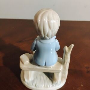 Vintage 80s Porcelain Glazed Boy On Bench With Dog Figurine