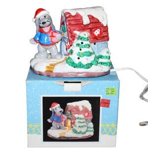 Vintage 80's Pound Puppies Cooler Ceramic Lighted Christmas Village House