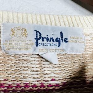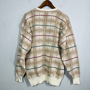 Vintage 80s Pringle of Scotland Crewneck Dad Sweater Checker Stripe - M