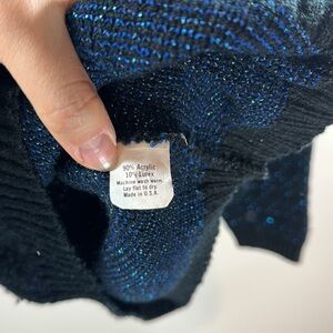 Vintage 80's Private Eyes Sweater Pullover Jumper Mock Turtleneck Blue Metallic