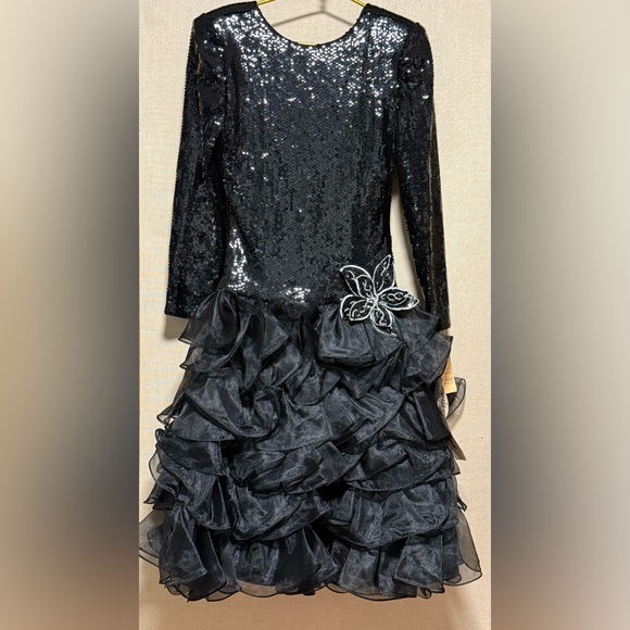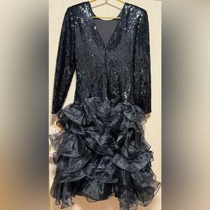 Vintage 80’s Prom Dress Martinique Sequin Tiered Ruffles Party Gown Goth Glam Size 8