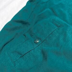 Green jacket with a purple puffy lining. High neck, zipper and hidden snap button closure. Has two front pockets. Vintage 1980s.