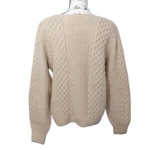 Vintage 80s Pure Irish Wool Cable Knit Bainin Sweater Handmade Aran Jumper L