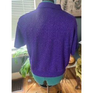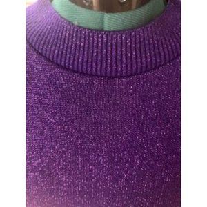 Vintage 80s Purple Glitter Pullover Short-Sleeve Stretchy Sparkly Sweater