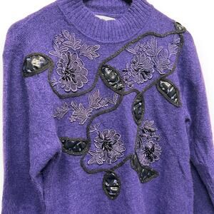 Vintage 80s Purple Mohair Beaded Embellished Sweater Size M/L