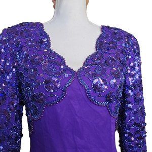 Vintage 80s Purple Silk Beaded Cocktail Dress Longsleeve