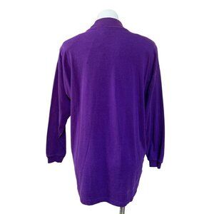 Vintage 80s Purple Turtleneck Shirt Large Embroidered Heart Shoulder Pads