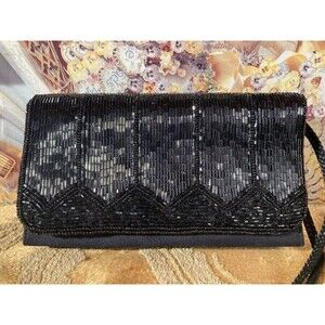 Vintage 80s Purse 1980s Black Beaded Art Deco Revival Prom Fancy Cocktail Bag