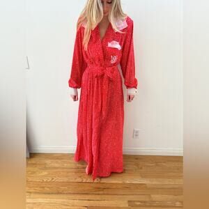 Size M In great vintage condition Has shoulderpads Red polka dot wrap maxi dress