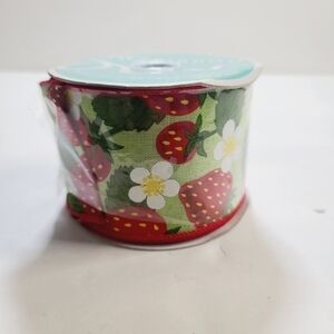 Vintage 80s RG Wide 2.5" Strawberry Print Garden Ribbon Craft Roll