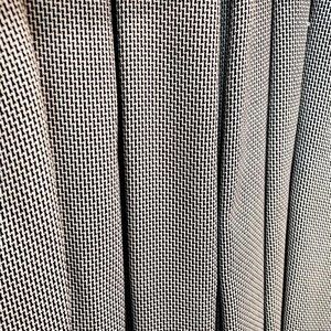 This Vintage R.J. Stevens by Carol Escritor Black & White Herringbone pattern pocket dress is size 12 & features 80’s shoulder pads (which can be cut out if desired), a white dickey/half snapped in place, Black scalloped velvet collar, long sleeves, side pockets, matching string-loop fabric belt w/gold buckle & pleated details on the shoulders & skirt of dress.