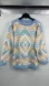 Beautifully detailed vintage ROSE sweater featuring a pastel Southwestern / Aztec pattern in soft hues of blue, lavender, mint, and beige. Woven with subtle metallic lurex threads for a hint of shimmer. Classic 80s oversized fit with dropped shoulders and ribbed cuffs/hem.