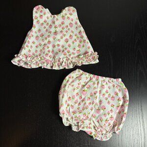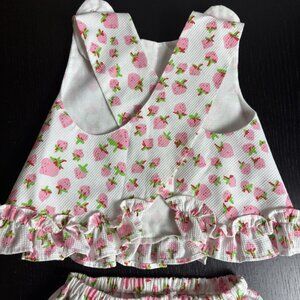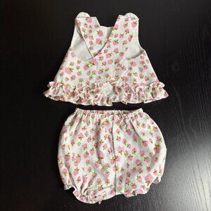 Vintage 80s RUTH SCHARF Baby Girl 3-6M Pink Strawberry Print Top & Blooomers Set