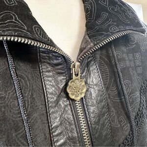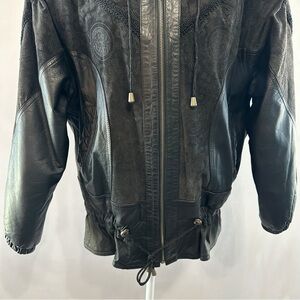 Vintage 80s Rafael Black Suede Leather Embossed Cropped Cinched Waist Jacket