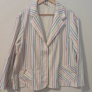 Vintage 80’s Rainbow Stripe Blazer Front Button Career Casual Pinstripe Pride