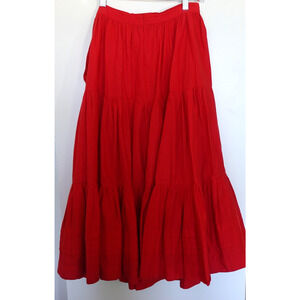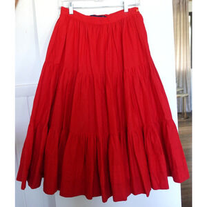 Vintage 80s Ralph Lauren Skirt Blue Label Womens 6 Red Full Tiered Boho Midi