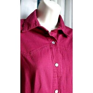 Vintage 80's Red Denim Western Style Dress Pearl Snap Button Gitano Medium
