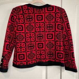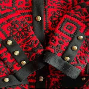 🎄Vintage 80s Red Faux Quilted Button Black/Red Secretary Jacket Top Made in USA