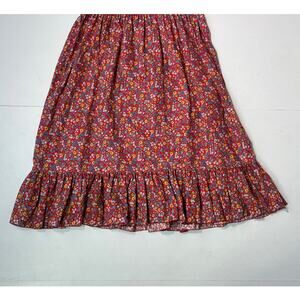 Vintage 80's Red Floral Shirred Cottagecore Dress / Sz XL Plus Handmade Prairie