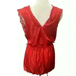 Vintage 80s Red Jaclyn Smith Lace Ruffle Tank Deep V