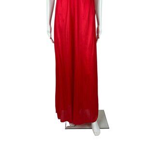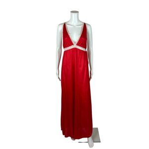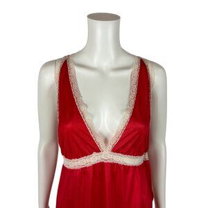 Vintage 80s Red Nightgown Women's Size M Valentines White Lace Deep V Nightie De