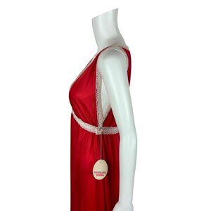 Vintage 80s Red Nightgown Women's Size M Valentines White Lace Deep V Nightie Deadstock