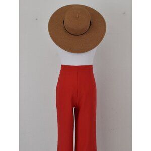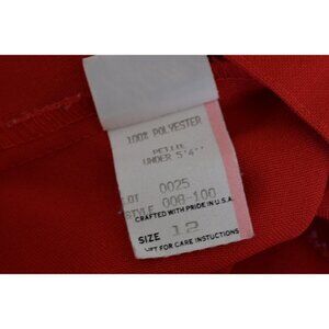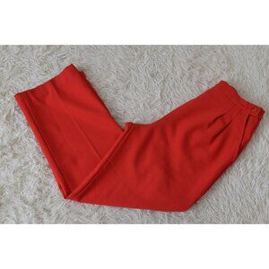 80s red high-rise poly trousers. Labeled as a size: 12 (PETITE under 5' 4")