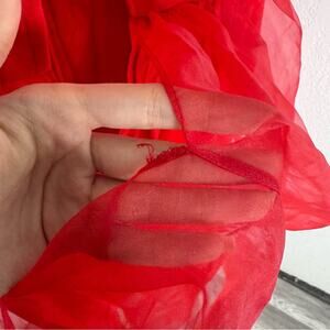 Vintage 80s Red Puffy Ruffle Dress Organza USA Union Made Small