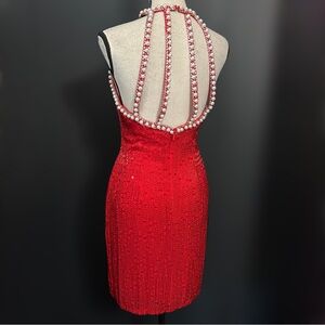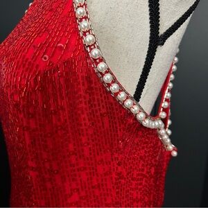 The most gorgeous, quality lipstick red beaded dress from the 80s. In excellent condition! 100% silk, pearl detailing and fully beaded.