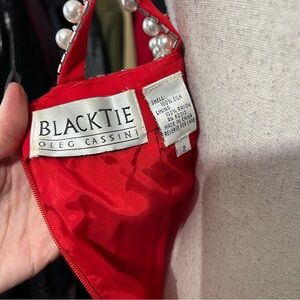 Vintage 80s Red Silk Beaded Pearl Oleg Cassini Black Tie Cocktail Dress Glam 2