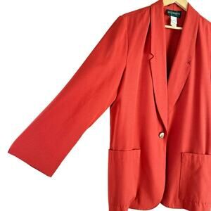 Vintage 80s Requirements Long Blazer Burnt Orange Ornate Gold Button Front Sz 12