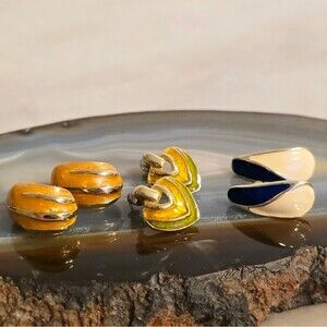Vintage 80s Retro Enameled Abstract and Hearts Earrings Set