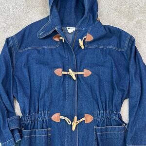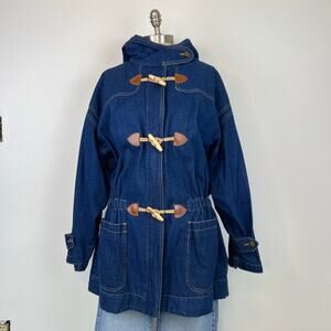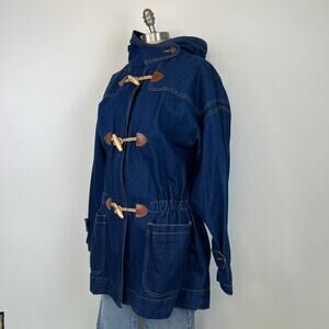 Vintage 80's Retro Leslie Fay Toggle Denim Hooded Chore Coat Barn Jacket (Sz M)