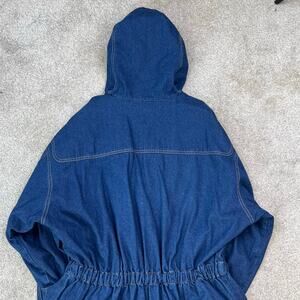 Vintage 80's Retro Leslie Fay Toggle Denim Hooded Chore Coat Barn Jacket. Labeled a size M and I included more measurements below for the perfect fit. High quality and in good condition. 100% cotton denim material. Hooded, toggle closure over zipper closure. Cinch waist, front pockets, wooden toggle closure. Perfect statement jacket for fall and cooler weather.