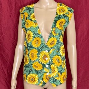 Vintage 80’s Reversible Striped/Sunflower Handmade Vest XL/XXL