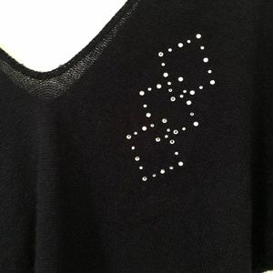 Black dolman sleeve sweater with rhinestone diamond shaped design on the front