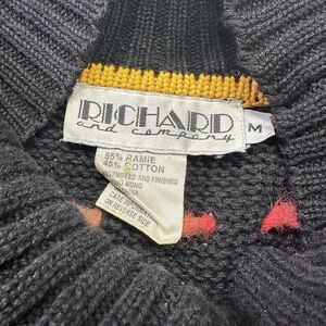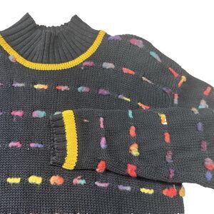 Vintage 80s Richard and Company Popcorn Knit Sweater Black Rainbow Nubby