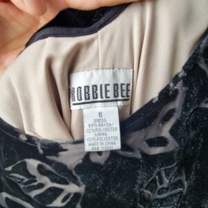 Vintage 80s Robbie Bee Sheath Dress 6 Womens Black Velvet Floral Draped Back