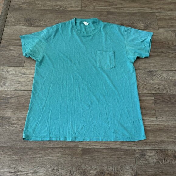 Vintage 80s Roebucks Teal Blank Pocket Shirt
