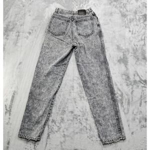 Vintage 80s Rose Denim Jeans Womens 9 Juniors Black Acid Wash High Rise Tapered