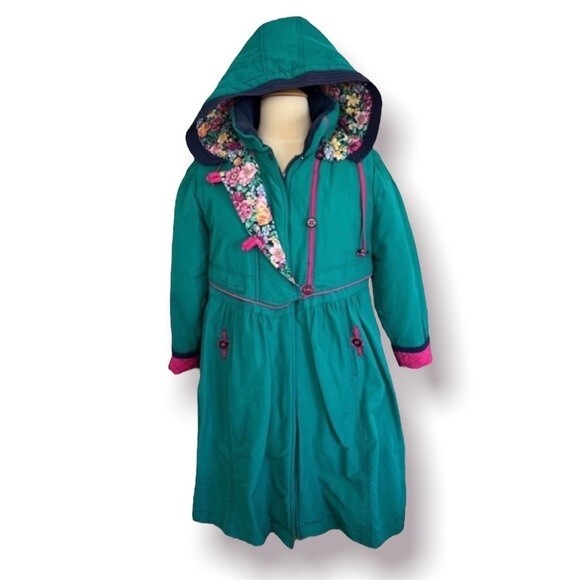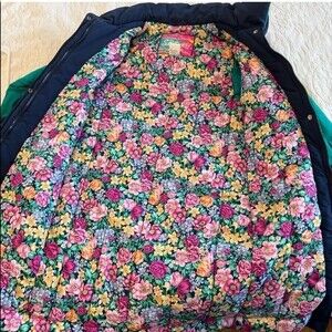 Vintage 80s Rothschild Coat Girls 12 Womens S/M Turquoise Floral Puffer Jacket