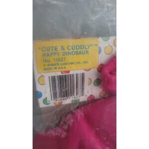 Keywords: 80s 90s toddler dinosaur costume, Made in USA Rubie’s, Cute & Cuddly Happy Dinosaur, vintage kids Halloween, nostalgic costume display piece.