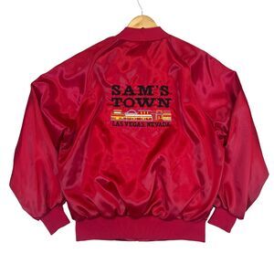 Vintage 80’s SAM’S TOWN Las Vegas ROYAL FLUSH CLUB Satin Bomber Jacket Sz L USA