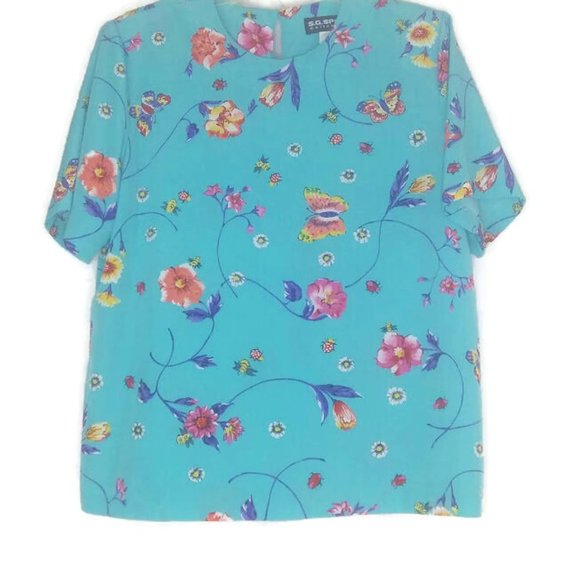 Vintage 80's SG Sport Collection Butterfly Floral Print Blouse