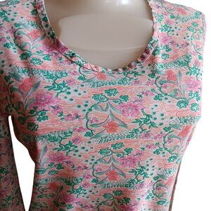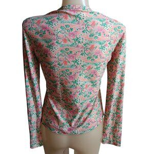Vintage 80s SIngle Stitch Small Floral LS Polyester Thin Stretch Womens Top