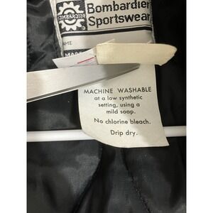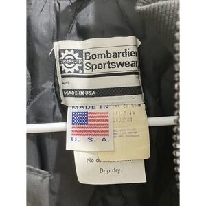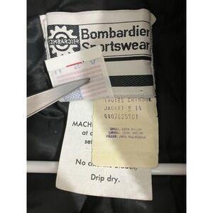 This Vintage 80's SKI DOO Bombardier Black Yellow Snowmobile Jacket is a women's size 14 featuring polyester insulation and nylon material. Made by Bombardier Sportswear in the United States, this windproof and insulated jacket is machine washable and adorned with the visible Bombardier logo. The retro design of the jacket makes it a unique and stylish choice for snowmobile enthusiasts looking for a classic piece of gear from the 1980s.