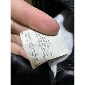 This Vintage 80's SNAP ON TOOLS Satin Bomber Jacket in XL size is a stylish and durable outerwear piece made in the USA. The jacket features a classic black color with a satin fabric type, giving it a unique and retro appeal. The bomber style and 80s theme make it a versatile and edgy addition to any man's wardrobe, perfect for those who appreciate quality craftsmanship and timeless fashion.