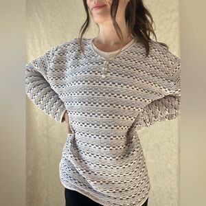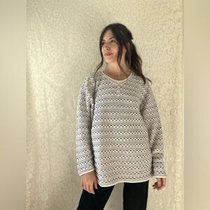 This vintage SPUNKY sweater is a bold, oversized knit with a playful mix of colors, perfect for making a statement. Its long silhouette and relaxed fit make it cozy for cooler days, while the multicolored pattern adds a pop of personality. Style it with leggings or jeans for a fun, laid-back look that brings retro flair to your wardrobe.