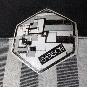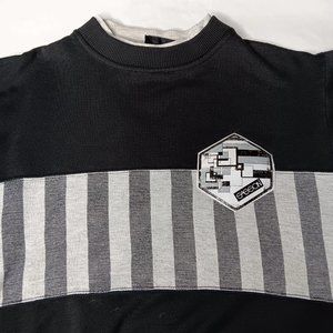 Vintage 80s Sasson Unisex Medium Sweatshirt Crew Neck Black Gray Stripe Retro