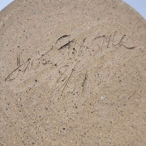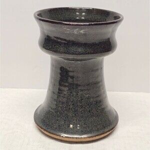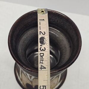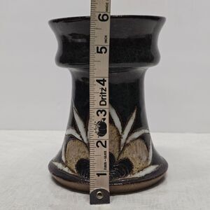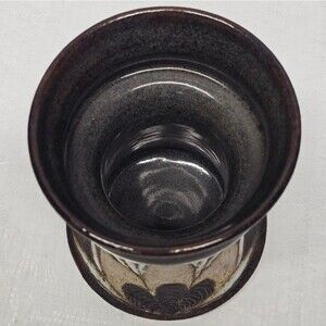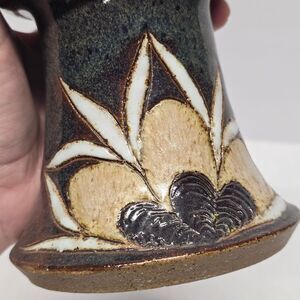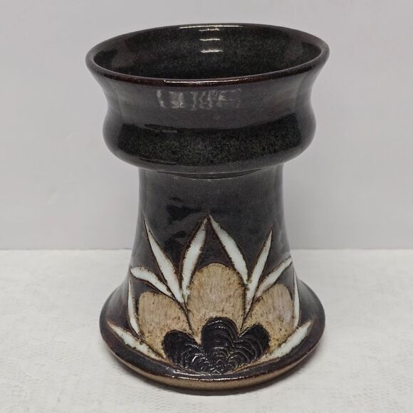 Vintage 80s Scandinavian Stoneware Pottery Floral Vase Blue Brown Signed Rustic